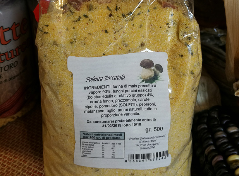 Farine per polenta: farina di storo, polenta con funghi porcini,polenta con speck
